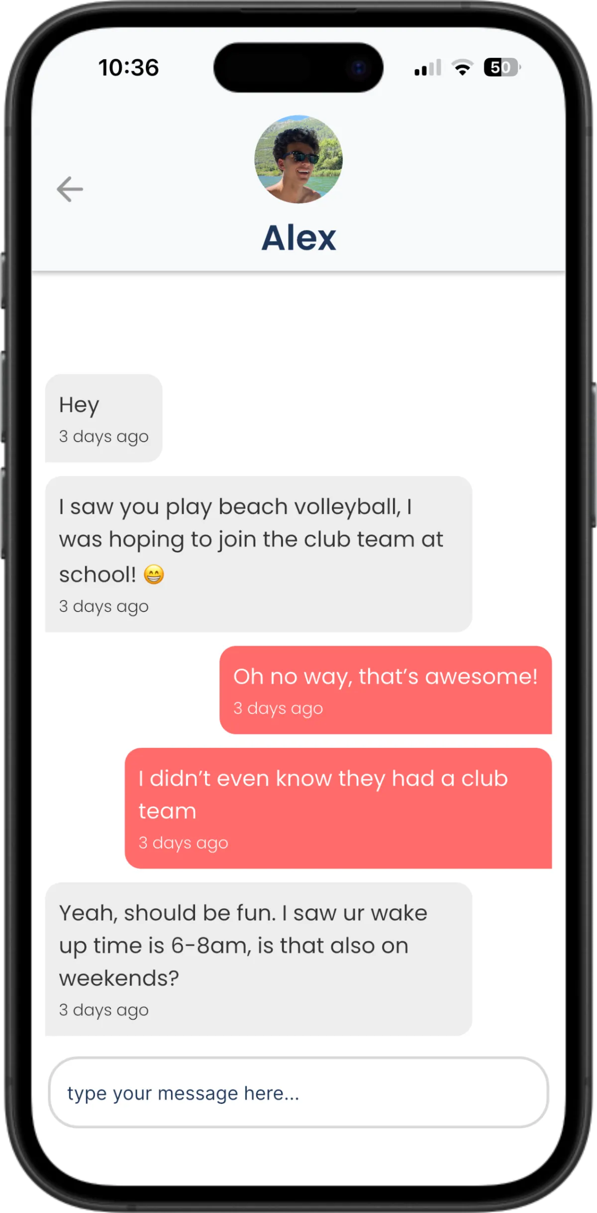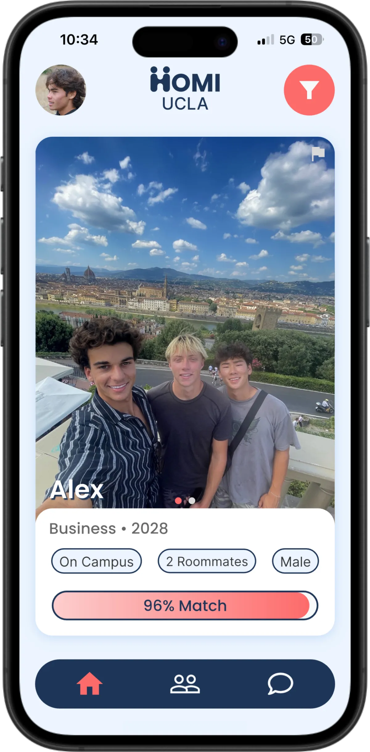 When you both swipe right, it's a Homi! Start chatting and get to know each other.